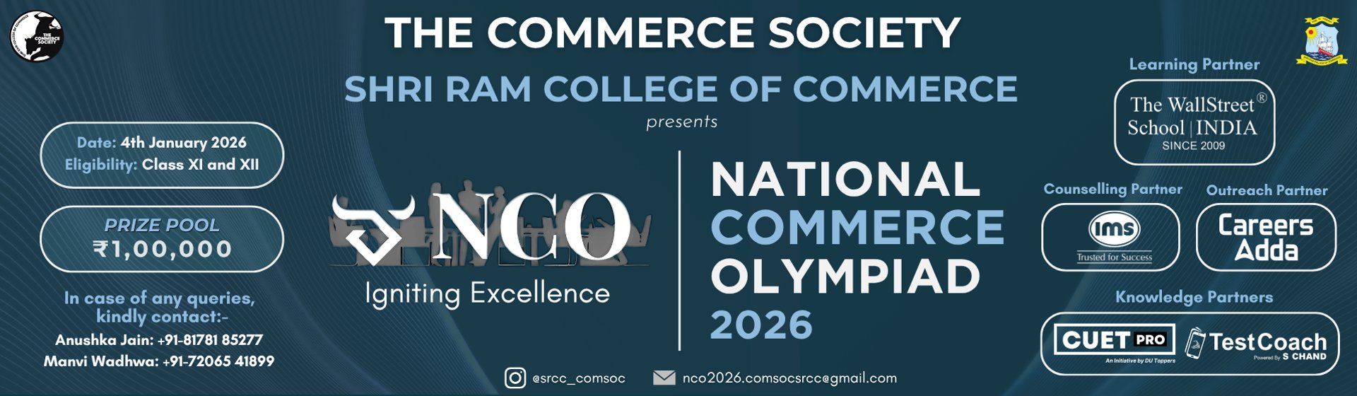 The National Commerce Olympiad, expertly orchestrated by the Commerce Society of SRCC, represents our commitment to fostering excellence and intellectual growth in commerce education across India. This prestigious competition attracted over 1,700 talented students from schools nationwide, encompassing participants from 11th and 12th grades as well as recent graduates ready to embark on their higher education journey. The thoughtfully designed event created a dynamic platform for young minds to demonstrate their commercial acumen while engaging in healthy competition that celebrates academic achievement. Through this grand initiative, we successfully established a nationwide network of commerce enthusiasts and reinforced SRCC's leadership in nurturing the next generation of business leaders.