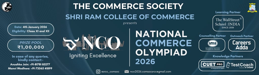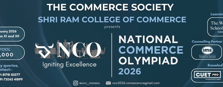The National Commerce Olympiad, expertly orchestrated by the Commerce Society of SRCC, represents our commitment to fostering excellence and intellectual growth in commerce education across India......