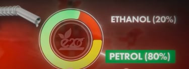 E20 means blending 20% ethanol with 80% petrol.Ethanol is one of the principal biofuels, which is naturally produced by the fermentation of sugars by yeasts or via other petrochemical processes. Sugarcane, maize, and rice are the crops that are prominently used for making alcohol for processing and as a biofuel. Sugarcane has the highest sugar yield per acre, so it is the best for ethanol production, and on top of that, sugarcane is widely grown in India, which makes it a great source of production. It benefits the Indian farmers as companies making E20 petrol will buy these crops from the farmers, and the BJP has also claimed that Indian farmers have made an extra revenue of 1.18 lakh crore rupees as claimed by Indian Sugar & Bio-energy Manufacturers Association (ISMA) and the Ministry of Petroleum and Natural Gas in July and August 2025, as a key achievement of India's ethanol blending program.